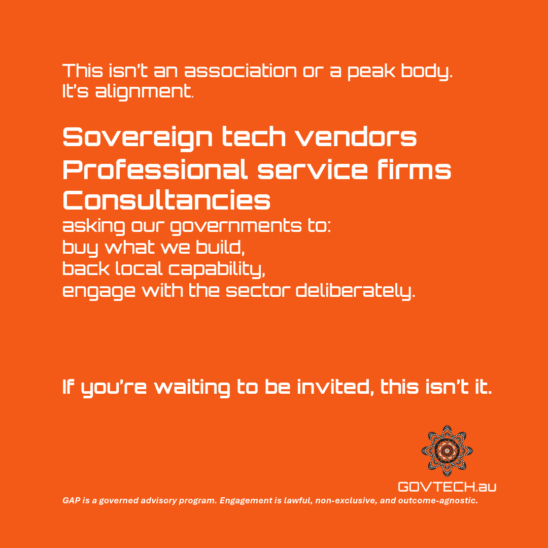 The GovTech Australia Group Advisory Program ALL HANDS. ONE VOICE. unites Australia’s sovereign tech sector into one coordinated lobbying force.